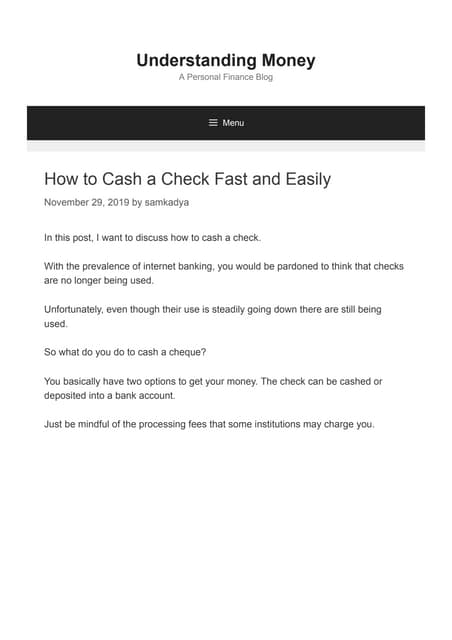 The safest and fastest way to get cash is to take your check to the check writers bank. How To Cash a Check Online 1. If you have a regular bank you can visit.